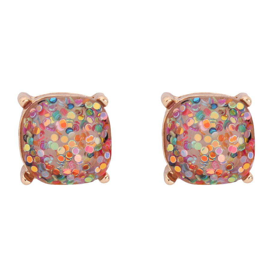 Full of sparkling glitter flurries, these designer-inspired earrings will sure have you shining all day long! Polished epoxy jewels adding just the right amount of subtle shine.